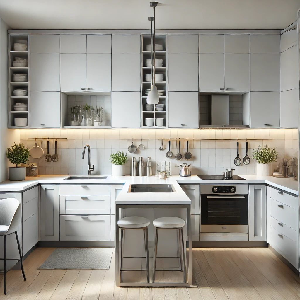 Material Selection: Durable options like quartz or granite work well for countertops, while laminates offer a sleek finish.