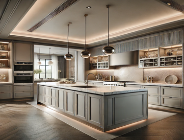 Add a luxurious touch to your home with an island kitchen, featuring a central island for additional storage, workspace, and socializing in open-plan living.